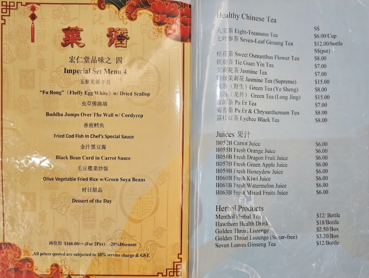 The menu at Imperial Restaurant presents a refined selection of traditional Chinese dishes crafted with attention to both flavor and presentation. It offers a balance between comforting classics and more intricate specialties, suited for a relaxed meal that appreciates the subtle nuances of taste.