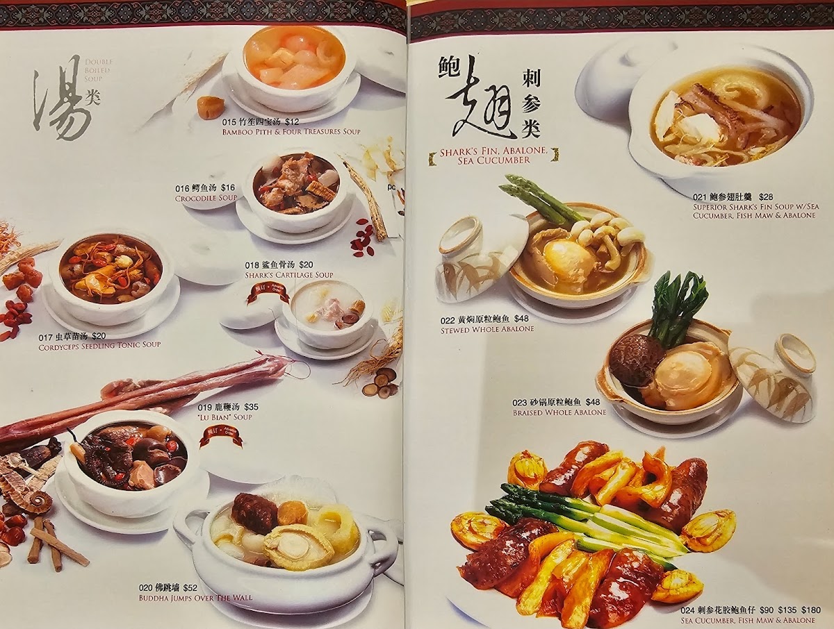Patrons often enjoy these dishes during leisurely lunches or dinner occasions where the ambiance invites a slower, more thoughtful dining experience. The menu includes richly flavored options like Superior Shark's Fin Soup with Sea Cucumber, Fish Maw, and Abalone, alongside lighter choices such as Baby Cabbage with Mushroom and quick-fried spicy cabbage, creating a varied yet harmonious meal progression.